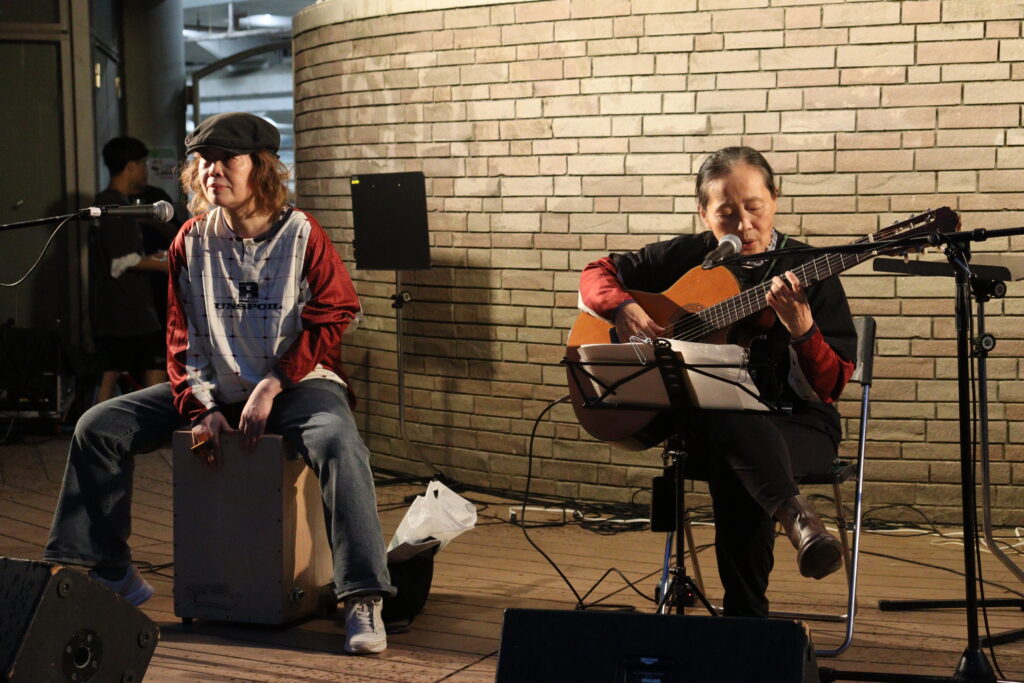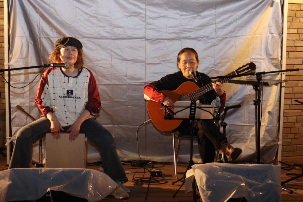 四組目は千里ニュータウン在住で、古い方の大阪万博を知っている姉妹デュオ「ぼっさSisters」の登場です。今回、クラシックギターとカホンで奏でたボサノバは、秋の夕暮れを美しく彩りました。