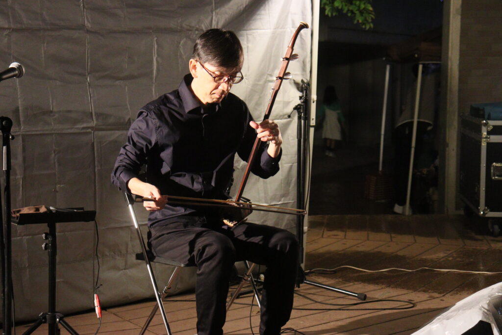すっかり日も暮れた会場に、二胡の弓で奏でる深みのある響きは、懐かしい旋律とともに穏やかな時間が流れました。